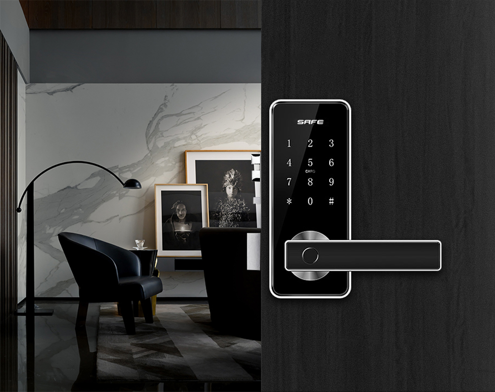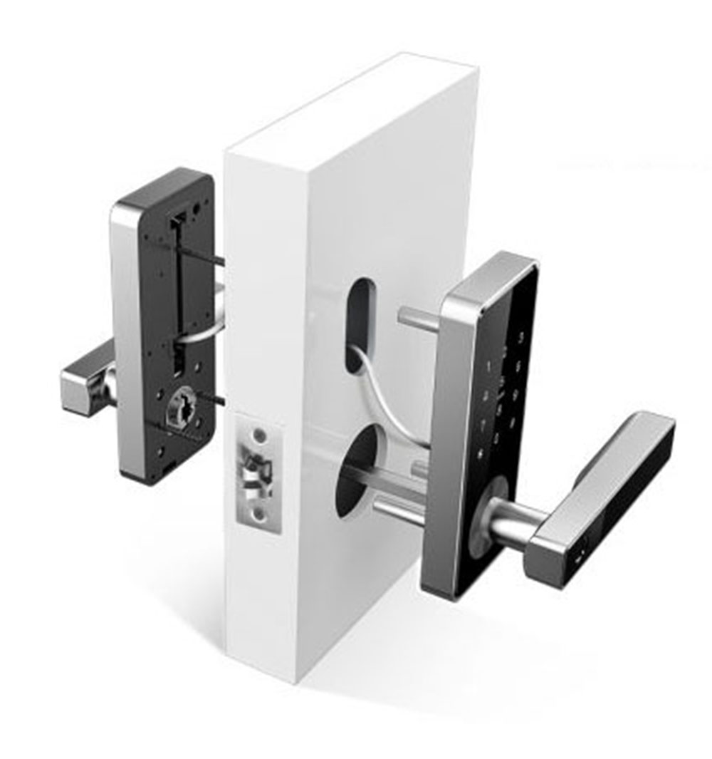 Elektroniczny zamek do drzwi SmartLock RCF MIDI sz=70mm (13,56Mhz Mifare, kod PIN, odcisk palca, Bluetooth)