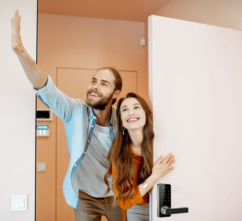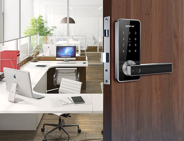 Klamka z wbudowanym czytnikiem linii papilarnych usprawnia przejście do pomieszczeń.